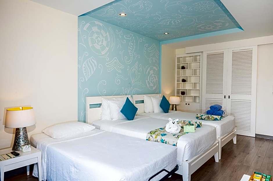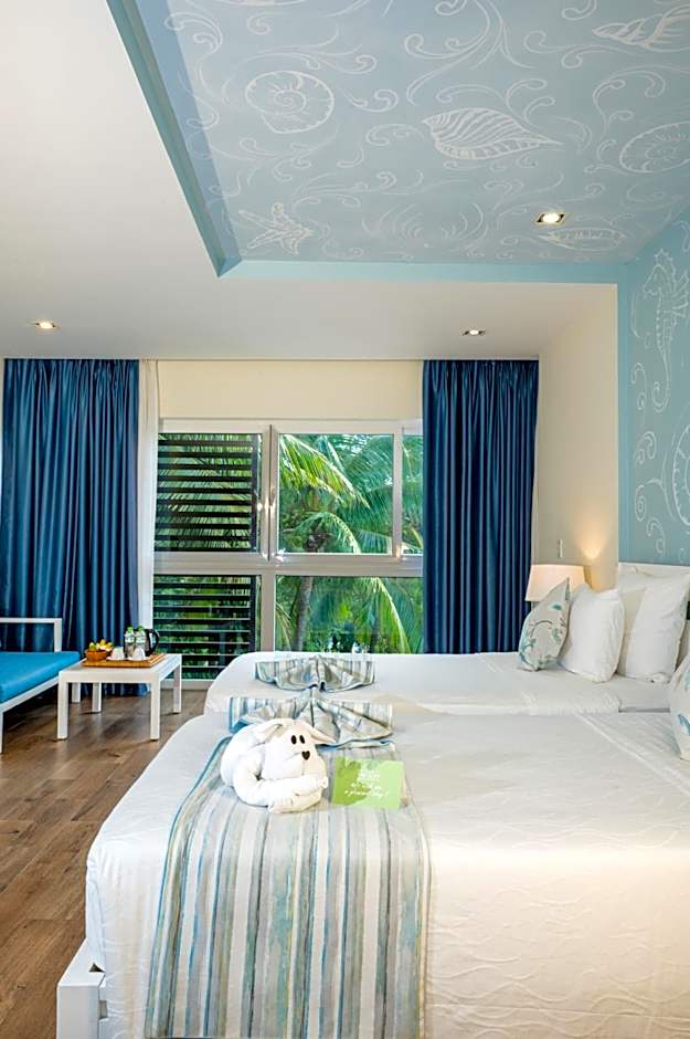 Rooms enjoy beautiful views of the pool from its balcony. Comes with a flat-screen TV and personal safe. Private bathrooms include shower facilities and free toiletries.